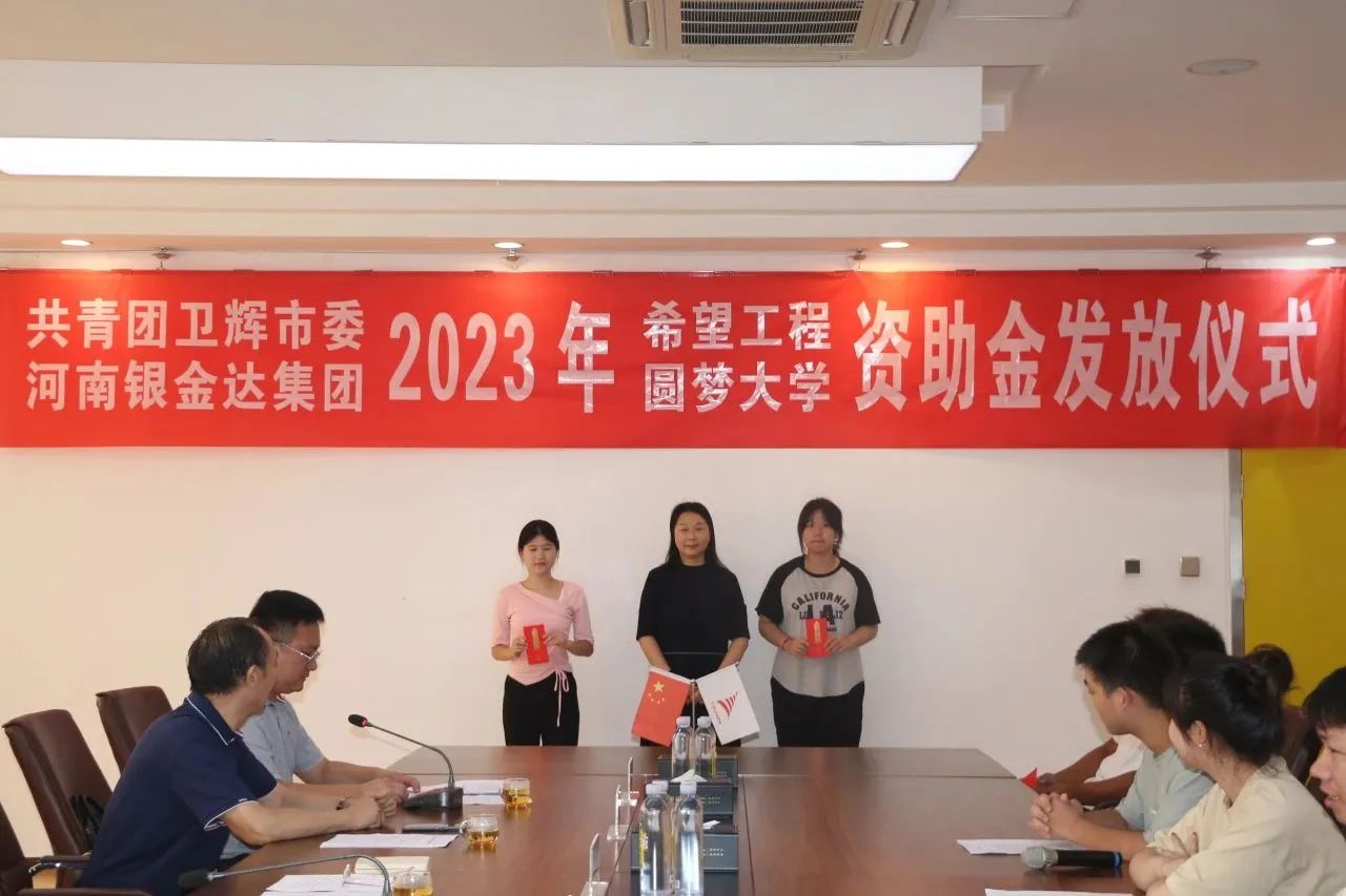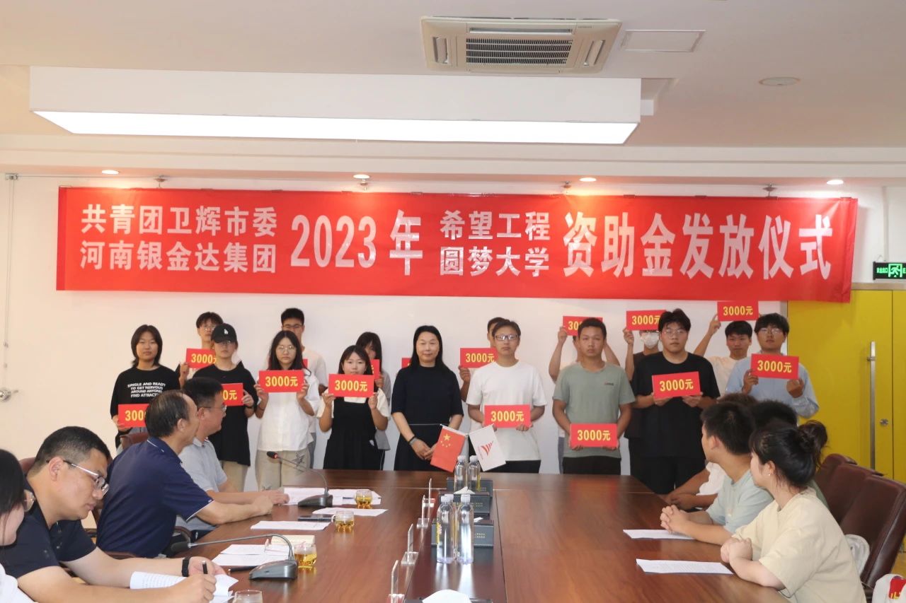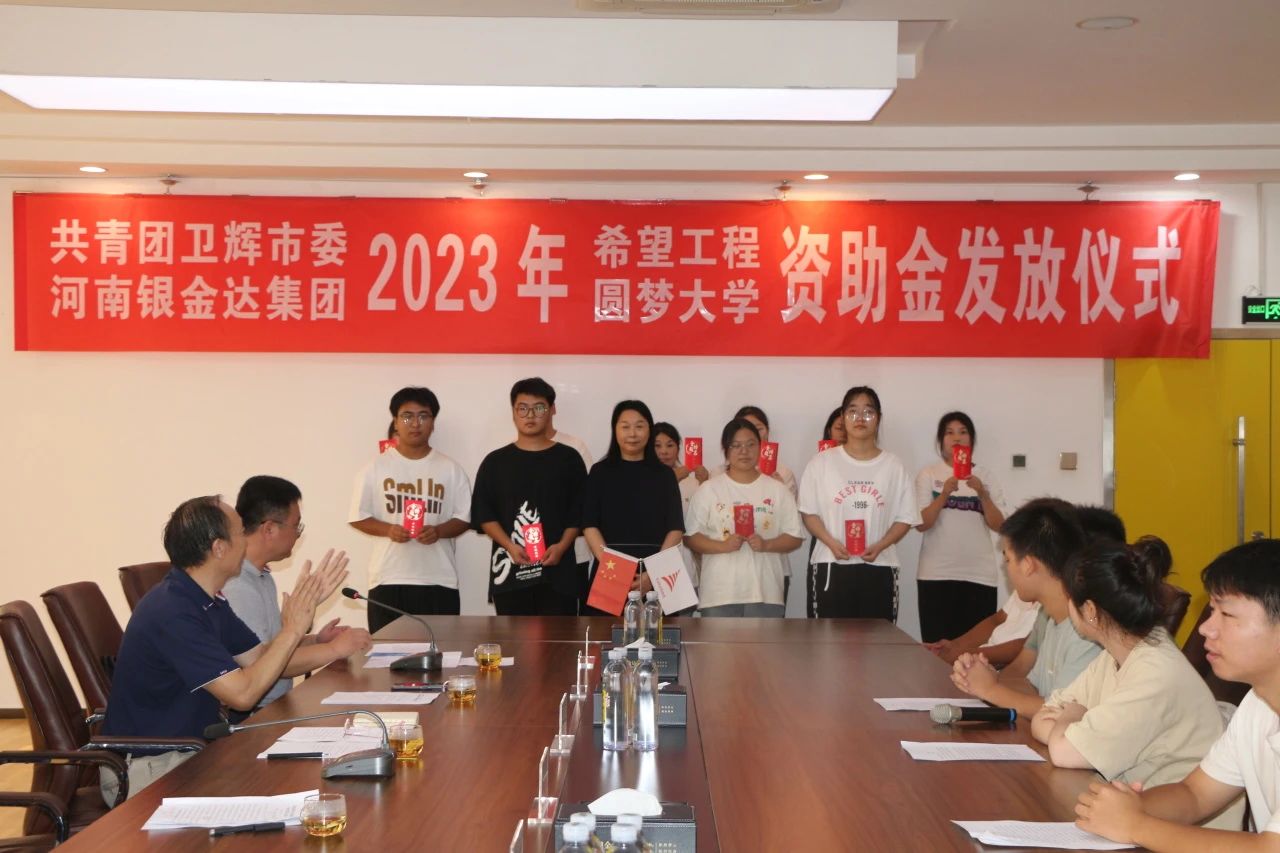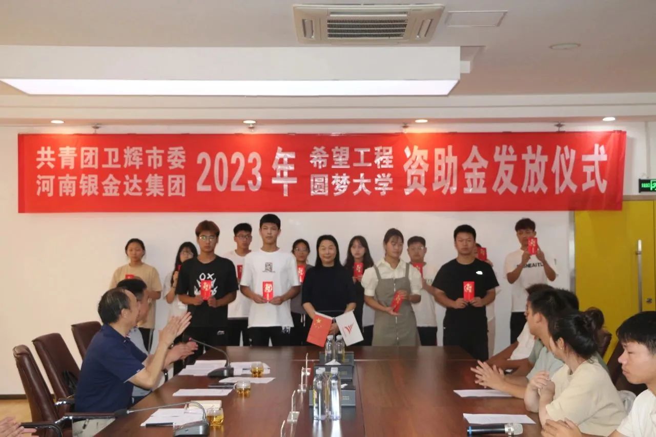8月18日,共青團衛(wèi)輝市委、河南銀金達集團2023年“希望工程·圓夢大學”資助金發(fā)放儀式在達新源公司三樓會議室舉行,衛(wèi)輝市委常委、副市長魏克濤、共青團衛(wèi)輝市委書記鄭鑫、河南銀金達集團黨委書記、董事長閆銀鳳、河南銀金達集團黨委副書記、工會主席楊鳳瑞出席儀式,2023年受資助的71名困難大學生和部分學生家長代表參加,儀式由河南銀金達集團文化宣教中心主任助理高嵩主持。
